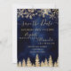 Zeit, um Ihr winterliches Hochzeitssmotiv zu feiern, mit diesem goldgelben Glitzer-Schneeflocken-Glitzern und dem schicken Pinienwald des Glitzer auf einem festlich marineblauen Aquarellhintergrund mit einer modernen coolen Schrift-Schriftart-Typografie. Eine schicke und elegante Hochzeitskarte Save the Date.