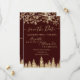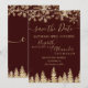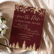 Zeit, um Ihr winterliches Hochzeitssmotiv zu feiern, mit diesem goldgelben Glitzer-Schneeflocken-Glitzern und dem schicken Pinienwald des Glitzer auf einem eleganten, dunkelroten Bordeaux-Hintergrund, mit einer modernen coolen Schrift-Schriftart-Typografie. Eine schicke und elegante Hochzeitskarte Save the Date.