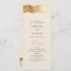 Tenez vos invités informés avec cette carte de programme de mariage. Son design moderne et minimaliste se compose de couleur crème beige, d'un arrière - plan d'aquarelle abstrait doré aux accents faux or et de détails complets sur les programmes de mariage des deux côtés pour un événement mémorable.