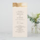 Behalt deine Gäste mit dieser Hochzeitskarte auf dem Laufenden. Das moderne minimalistische Design besticht durch beige Creme, einen goldenen, abstrakten Aquarellhintergrund mit goldenen Imitaten und goldenen Akzenten sowie umfangreiche Details zum Hochzeitsprogramm auf beiden Seiten für ein unvergessliches Ereignis.