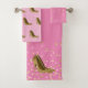 Chic Girly Bad Handtuch Set in Rosa, mit Grafik von Gold und hellrosa Konfetti und Gold Stiletto High Heels getan. Set für jedes Alter.