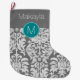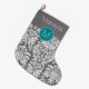 Chic Grau und Aquamarin Damask Muster Custom Monog Großer Weihnachtsstrumpf