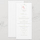 Chic und frisch mit jugendlichen Untertönen. Dieses Template verfügt über 3 Gänge und Getränke, zusammen mit einem Blumenmonogramm mit einigen Initialen ganz oben auf der Karte. Die Farben sind in Rosa, Grün und Weiß gehalten. Die Rückseite der Karte wurde als weiß verlassen.