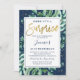 Chic Greenery Navy Blue Gold Überraschung Geburtstag Einladung