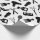 Cooles Verpackungspapier mit schwarz-weißem Muster der Silhouetten verschiedener Friseurwerkzeuge, wie Scheren, Kämme, Haartrockner, etc.