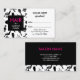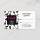 Eine schicke Terminkarte für eine Haarstylistin in Schwarz, Weiß und Magenta mit einer Silhouette von Haarstylist-Tools.