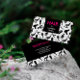 Eine schicke Visitenkarte aus dem Haar in Schwarz, Weiß und Magenta mit einem Silhouette-Muster von Haarstyllizwerkzeugen.