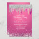 Chic Hot Pink Silver Dripps Glitzer Monogram Einladung