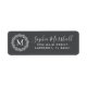 Stilvolle Monogramm-Rücksendeadressen-Aufkleber mit leicht zu personalisierenden Vorlagen - Eine weiße Kranzkraut-Silhouette, die ein klassisches Monogramm auf einem eisengrauen Hintergrund umgibt. Die Vorlage für Ihren Namen ist in einem eleganten Kalligraphieskript und die Adresse ist in einem einfachen Schriftart geschrieben. Personalisierte Rücksendeadressen-Aufkleber mit einem weiblichen Kranz und Monogramm fügen Ihrer Mail eine saubere und persönliche Touch hinzu. Um die Hintergrundfarbe zu ändern, klicken Sie auf die Schaltfläche Schriftart personalisieren.