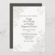 Faire-part de mariage chic et design, blanc avec des fioritures d'ivoire, dans les coins et le texte personnalisé de couleur brun foncé. Personnalisez tous les champs de texte pour votre journée spéciale. Des produits mariages correspondants sont disponibles.