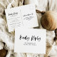 Diese schicke und stilvolle, schwarz-weiße Hochzeitspostkarte bietet ein lässiges, modernes Drehbuch für ein einfaches, aber völlig modernes Aussehen. Es gibt Platz, um Ihren Gästen die Wahl zwischen Vorspeise oder Abendessen hinzuzufügen.