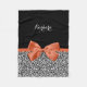 Personalisieren Sie es, indem Sie den Namen eines Girly Girl zu diesem schicken schwarz-weißen leoparden Fleecedecke mit einem eleganten, verbrannten orangefarbenen Band in einem ausgeklügelten Bogen hinzufügen. Dieses stilvolle Tierdesign ist ein flaches gedrucktes Bild und enthält kein echtes Band.