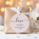 Chic hellrosa Geschenketiketten für Ihre Gastgeschenke Hochzeiten mit "Liebe + Dank" in schlichter moderner Schrift und einem eleganten Drehbuch mit Wimpern, Ihren Vornamen verbunden durch ein Herz und Ihr Hochzeitstag.