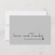 Carte de remerciements décontracté moderne. Noms personnalisés, date mariage et coeur. Inclut un message pré-écrit et modifiable au verso.