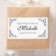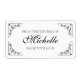 Elegantes Schwarz-Weiß Made mit Liebe von / Von der Küche der Lebensmitteletiketten. Stilvolle Schrift-Typografie-Vorlage mit verzierten Wirblen Rändern. Klassisches Design mit eigenem Farbhintergrund. Praktische DIY-Küchenaufkleber für hausgemachte Koch- und Backprodukte wie Weihnachtskekse, Süßigkeiten, Kuchen, Süßigkeiten, Kuchen, Leckereien für den Urlaub, Gelee, Honig usw. Vintage Country chic Stil Konservenverpackung. Große extra große Größe.