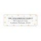 Feiern Sie die magische und festliche Urlaubssaison mit unseren individuellen Urlaubstafeln. Das moderne schicke Ferienlabel besticht durch moderne, stilvolle Imitate mit goldenen Sternen, die sich um den Namen und die Adresse verstreut befinden. Alle Illustrationen in diesem modernen Chic-Urlaubsterndesign sind handgezeichnet Originalkunstwerke von Moodthology. Sie können die Textgröße, Textfarbe, Schriftart und Layout für Ihre individuelle Designvorliebe anpassen.