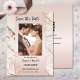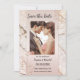 Save the Date Karte mit Ihrem individuellen Foto gerahmt durch die elegante Rose goldfarbene Wirbel aus Metall, blass pink und Marmor mit festlichen Glitzern. Auf der Rückseite ist eine leicht anpassbare QR-Code-Vorlage. Sie können es auch löschen, wenn Sie es nicht benötigen.