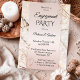 Eine romantische Einladung zur Verlobung mit Rose-goldenen Wirbel auf einem rot rosa mit Marmorhintergrund mit festlichen Glitzern.