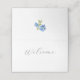 Minimal, schick und einfach weiß gefaltete Karte. Diese Hochzeitstisch-Platzkarte bietet einen modernen Script-Schriftart, eine Zeile für die Handschrift Gastnamen, eine Blumenillustrierung an der Kartenrückseite sowie einen optionalen Bereich für Extratexte an der Karteninnenseite.