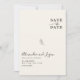 Ein minimalistisches Schwarz-Weiß-Design mit einem ausgeklügelten Signaturskript, das mit einem botanischen Kranz vor einem Elfenbeinfarbenhintergrund versehen ist. Eine außergewöhnliche Save the Date Hochzeitsankündigung mit der QR-Codefähigkeit, die sich gut mit den meisten modernen Hochzeitsstätten verbindet.
