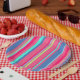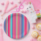 Dieses moderne Design zeichnet sich durch farbenfrohe Streifen in Rosa, Blau und Grün aus. #modern #chic #stylish #elegant #girly #preppy #forher #partysupplies #partyplate #tableware #paperplates