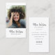 Moderne und berufliche Visitenkarten für die Fotografie, die Ihr Foto in einem schlichten, weißen Rahmen mit trendiger minimalistischer Schrift-Typografie darstellen. Fügen Sie Ihre Kontaktinformationen auf die Rückseite. Dieses stilvolle Design beinhaltet drei Social Media Icons und ein Feld für Ihren Benutzernamen.