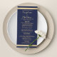 Elégant style moderne marine bleu et faux or luxe mariage invitation Programme de mariage.Cette élégante marine bleu moderne et design invitation à programme de mariage est parfait pour toute fille glam classe et sophistiquée. Ce design est parfait pour les soirées tendance et élégantes. Customisez ce design avec votre propre message et des informations personnalisées. Tous les dessins sont imprimés.