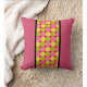 Chic Polka Rasberry Moderne À Jeter Oreiller. Avant - arrière - plan de framboise avec pois coloré strié vers le centre arrière - motif de pois coloré, bande correspondante sur l'avant