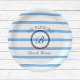 Passen Sie dieses Whitewood und Light Blue Stripes Paper Plate mit Ihrem Monogramm- und Familiennamen an und fügen Sie Ihrem Beach House Tableware eine schicke Touch hinzu. Ideal auch für ein Beach Zuhause Party oder Beach Housewarming Party.