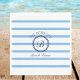 Chic Monogram Blue Stripes Family Name Beach House Serviette