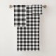 Ajoutez un accent frappant à votre salle de bain avec un élégant ensemble de serviettes sur mesure comprenant un linge de toilette, une serviette de bain et une serviette de bain avec un motif élégant en plastique noir et blanc. Les carrés noirs, blancs et gris forment un plaid à carreaux gras avec de fines lignes blanches qui divisent les carrés noirs et gris. Achetez le set complet ou n'importe quel morceau. Pour voir le Motif Plaid noir et blanc sur d'autres articles, cliquez sur le lien "Rocklawn Arts" ci-dessous. numériquement créé une image. Copyright © Claire E. Skinner. Tous droits réservés.