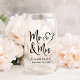 Eine schicke Hochzeit kann Set für Neuvermählte mit "Mr. & Mrs." in einem großen, eleganten Drehbuch und einer Darstellung von zwei Herzen vereint. Fügen Sie die Namen der Braut und des Bräutigams und das Hochzeitdatum hinzu.