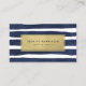 Chic Navy Blau und Gold gestreift Visitenkarte