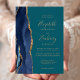 Le bord gauche de cette élégante faire-part de mariage moderne est orné d'une bordure en aquarelle bleu marine ornée d'une parties scintillant en faux or. Le texte personnalisable combine écriture manuscrite dorée, cuivre et polices italiques sur un arrière - plan turquoise. L'envers est assorti d'un design d'agate bleu marine et or.