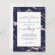 Chic Navy Blue Rose Gold Marble Wedding Einladung