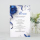 Ein luxuriöses Design mit blühenden marineblauen Blumen, satinierten Bändern und zarten Akzenten weißer Blumen. Dieses elegante und verzierte Design ist ideal für feierliche Hochzeiten mit klassischer oder glamouröser Ästhetik.