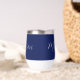 Eine schicke, marineblaue, personalisierte Monogramm-Weine-Taumelin für ein Mädchen oder einen Typ, das einfache, handgeschriebene Geschenke Liebe. Schönes weißes kursives Drehbuch, das den Namen in der modernen Typografie absteckt.