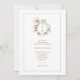 Diese elegante, neutrale botanische Hochzeitseinladung besticht durch einen modernen Kranz mit vertikaler Monografie und eleganter Typografie.