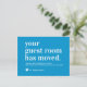 Your Guest Room Has Moved Moving Faire-part avec un script moderne et une typographie de police et un coeur. Les couleurs peuvent être changées facilement en cliquant sur personnaliser, puis cliquez pour customiser plus loin pour voir notre sélecteur de couleurs. Contactez notre magasin si vous avez besoin d'aide.