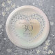 Mit einer Perlen- und Perlenkur kann diese schicke 30. Hochzeitspapierplatte mit Ihren Perljubiläumsinformationen auf Perlenhintergrund personalisiert werden. Entwickelt von Thisisnotme©