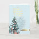 Niedliches Gnome mit Kiefernbaum auf blauem Hintergrund macht dies zu einer idealen Weihnachts- oder Urlaubskarte für Freunde und Familie.