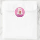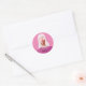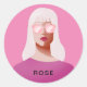 Chic rosa klassischer Rundaufkleber mit einer eleganten Frau, rosa Haar und Brille und individuellem Namen. Für schicke Briefe, Geschenke, für Schule und Büro.