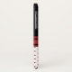 Hübsches iPhone X Gehäuse in schwarz, oben, und weiß mit roten Polka Punkte, unten. Die Grafik eines roten Satin-Bogens und eines Farbbands verläuft in der Mitte des Gehäuses. Personalisieren Sie den weißen Text für sich selbst oder als großartige Geschenkidee für sie.