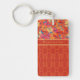 Un chic Porte - clé acrylique oblong à personnaliser, avec des pavots orange, jaune et rose sur un arrière - plan Sky Blue, en équipe avec un motif coordonnant rouge damassé. Ce design floral et lumineux fait partie de la collection Posh & Painterly "Poppy Fields".