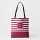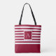 CHIC RED WHITE STRIPE Square Letter Monogram Tasche