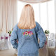 De belles fleurs d'aquarelle rose vif ornent cette veste de denim, simple et chic et personnalisée de demoiselle d'honneur pour une douche nuptiale d'été ou une fête de bachelorette dans un jardin. Le joli script cursif est mis en valeur par un magnifique magenta plein de vie et un bouquet de roses violets pour votre fête de mariée. Customisez aussi votre femme d'honneur ou de fille aux fleurs.