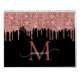 Chic Rose Gold Glitzer Blush Monogram Name Black Kalender