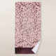 Sur cet élégant ensemble de serviettes se trouve une salle de motifs en marbre rose rose vif, aux rideaux violets brillants et vertigineux, créant un glamour supplémentaire pour toute décoration de salle de bain.