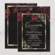 Chic Rote Rosen Gold Frame Black Quinceñera Einladung