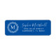 Moderne Monogramm-Rücksendeadressen-Aufkleber mit leicht zu personalisierenden Vorlagen - Eine weiße Kranzkranz-Silhouette, die ein einfaches Monogramm auf königsblauem Hintergrund umgibt. Die Vorlage für Ihren Namen ist in einem schicken Kalligraphieskript und die Adresse ist in einem einfachen Schriftart geschrieben. Personalisierte Rücksendeadressen-Aufkleber mit einem weiblichen Kranz und Monogramm fügen Ihrer Mail eine saubere und persönliche Touch hinzu. Um die Hintergrundfarbe zu ändern, klicken Sie auf die Schaltfläche Schriftart personalisieren.